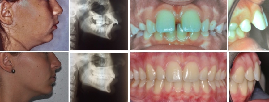 Fall 7: Engstand und vergrösserter Überbiss Therapie: Extraktion von 4 Zähnen sowie Gartenhag